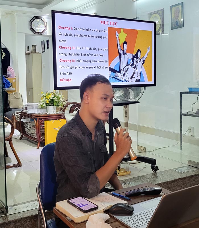 Nội dung chuyên đề được triển khai theo mạch rõ ràng. Trước hết là cơ sở lý luận và thực tiễn về lịch sử, gia phả và biểu tượng yêu nước. Lịch sử được nhìn nhận không chỉ là tập hợp những mốc thời gian và sự kiện, mà còn là câu chuyện gắn với từng cá nhân, từng dòng họ - những viên gạch làm nên bản sắc văn hóa dân tộc. Gia phả không chỉ lưu giữ cội nguồn, mà còn tạo sợi dây kết nối các thế hệ, khơi dậy ý thức trách nhiệm của mỗi người với gia đình, cộng đồng và Tổ quốc. Bên cạnh đó, các biểu tượng yêu nước - từ nhân vật lịch sử, sự kiện trọng đại đến truyền thuyết dân gian - cũng được nhắc lại như minh chứng sống động cho sức mạnh của tinh thần dân tộc trong suốt chiều dài lịch sử.