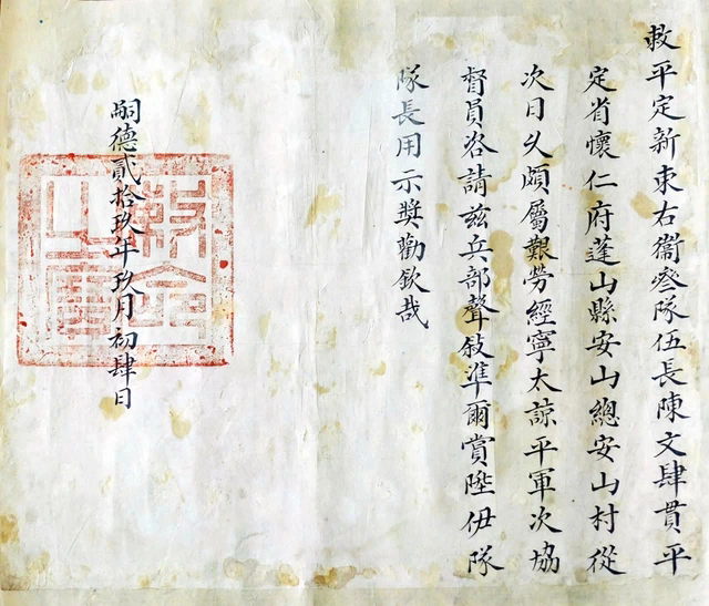Sắc phong năm Tự Đức 29 (1876) được con cháu họ Trần (P.Tam Quan, Gia Lai; thuộc TX.An Nhơn, Bình Định cũ) lưu giữ. Ảnh: TRUNG TÂM LƯU TRỮ GIA LAI