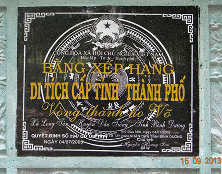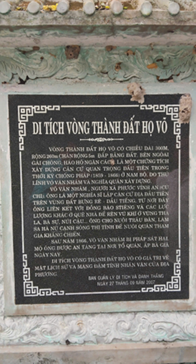 Đến năm 2004, ông Võ Văn Sổ, hậu duệ đời thứ sáu của cụ Võ Văn Nhâm đề xuất, được UBND tỉnh Bình Dương ra quyết định số 2941/QĐ-UB xếp hạng Di tích Lịch sử Văn hóa cấp tỉnh: “Di tích lịch sử cách mạng Thành đất họ Võ, xã Long Tân, huyện Dầu Tiếng”. Thành đất họ Võ chính là Vòng Thành của ông Võ Văn Nhâm(1) .