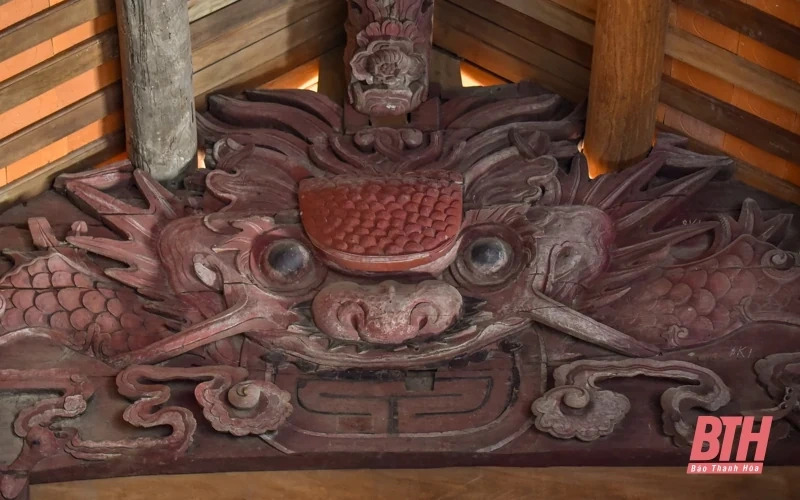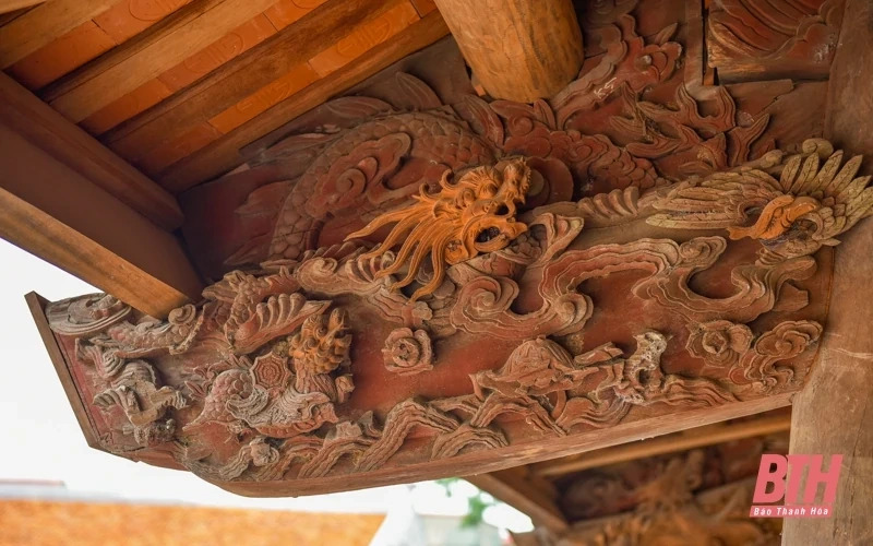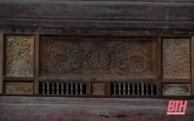 Hình tượng lá cúc cách điệu và lá sen được chạm khắc phổ biến trong toàn bộ trang trí nội thất ngôi đình. Với cách trang trí này không hề gây ấn tượng đơn điệu, ngược lại còn làm tăng sự uyển chuyển, mềm mại của công trình.