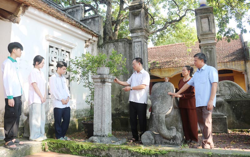 Con cháu dòng họ Nguyễn Đức tìm hiểu truyền thống lịch sử của cha ông tại miếu Đại Trung