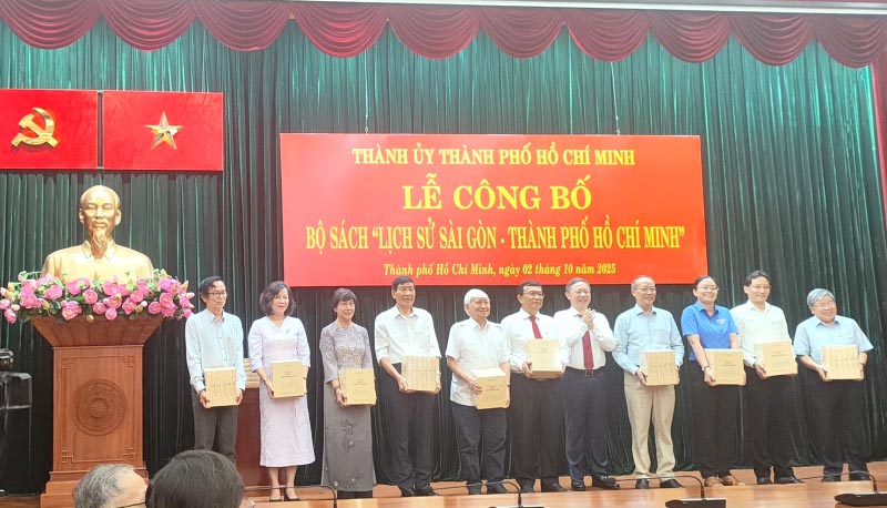 02/10/2025 17:25:16Ngày 2/10, Thành ủy TP Hồ Chí Minh tổ chức Lễ công bố bộ sách "Lịch sử Sài Gòn - TP Hồ Chí Minh". Bộ sách gồm 5 tập và 1 quyển giản lược, công trình kết tụ giá trị khoa học, tư tưởng, lý luận và thực tiễn sâu sắc; phản ảnh toàn diện có hệ thống lịch sử ra đời, xây dựng và phát triển của TP Hồ Chí Minh.